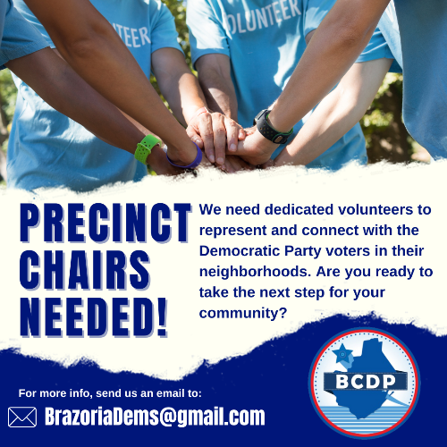 The Brazoria County Democratic Party organizes the party on a county-wide basis, supporting all local, state, and national Democratic candidates. Texas is purple and turning bluer every day — but only with ALL of us working together!